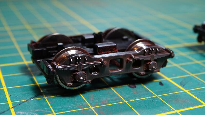 Ik begin met het uit elkaar halen van de wagon. Ik haal eerst de wielstelen los en dan de NEM schachten. Daarna begin ik met het weatheren van de wielstellen dat doe ik met de Vallejo pigment poeder 73108. De poeder doe ik in een bakje waarna ik die met een kwastje aanbreng op de wielstellen. de poeder breng ik aan tot het naar mijn zin is dat doe ik ook aan de zij en voorkanten van de wagon. De bovenkant van de wagon kleur ik in met de Woodland scenics Track painter TT4582. Als dat gedaan is gebruik ik de vallejo wash #515 om de groefjes eruit te laten komen. In de video verdun ik deze 1 op 1 met water dit is niet perse nodig als je het niet mengt word het effect alleen wat donkerder. Daarna zet ik de wagon weer in elkaar. LET OP als de wagon niet goed rijd kan dat betekenen dat er pigment poeder gekomen is in de aspotjes van de wielen. Dit is op te lossen doormiddel van een klein beetje nieuwe olie in de aspotjes te doen.